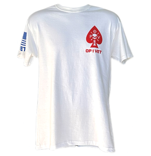 Great looking multi-color Graphic T. White with Red/Blue/Black Graphics
